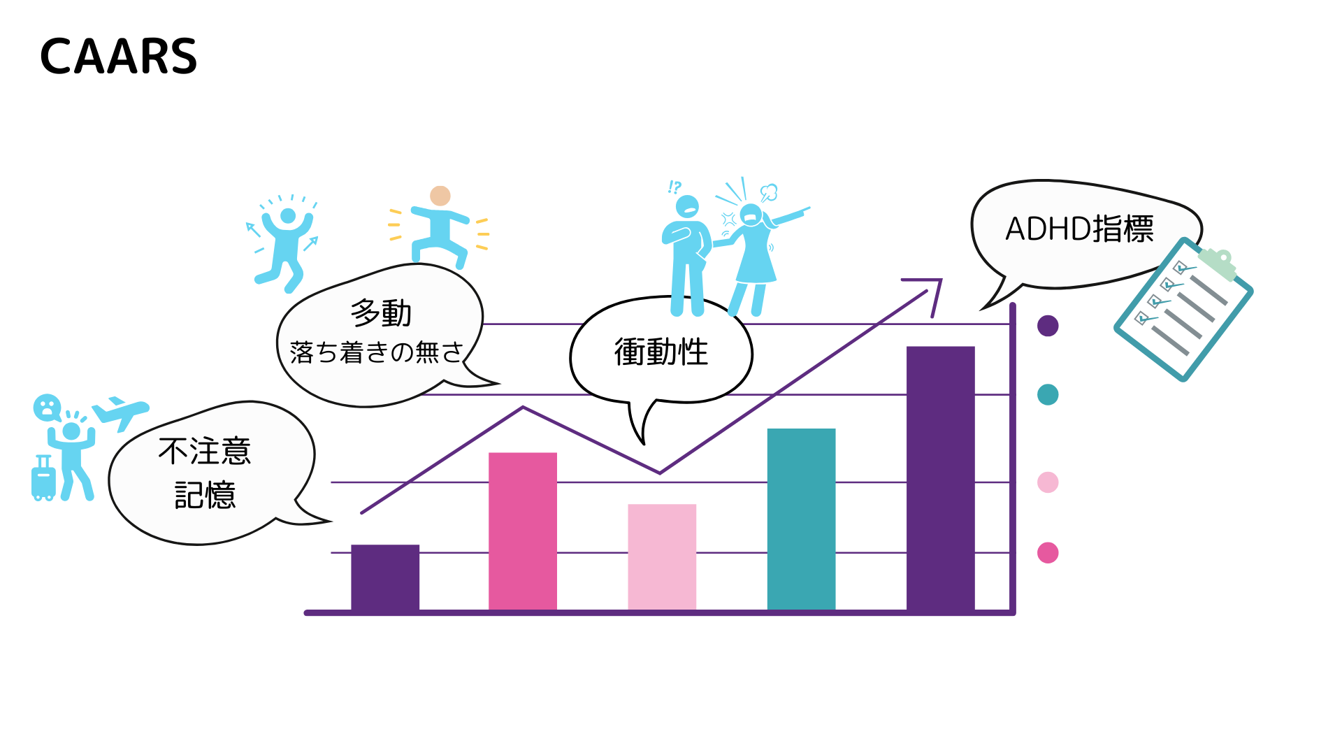 CAARS is a questionnaire test to evaluate the symptoms of Attention Deficit Hyperactivity Disorder (ADHD) in adults. It is an evaluation scale to determine whether the tendencies of "inattention, hyperactivity, and impulsivity," which are characteristic of ADHD, meet the criteria for ADHD and to grasp the severity of the symptoms.
